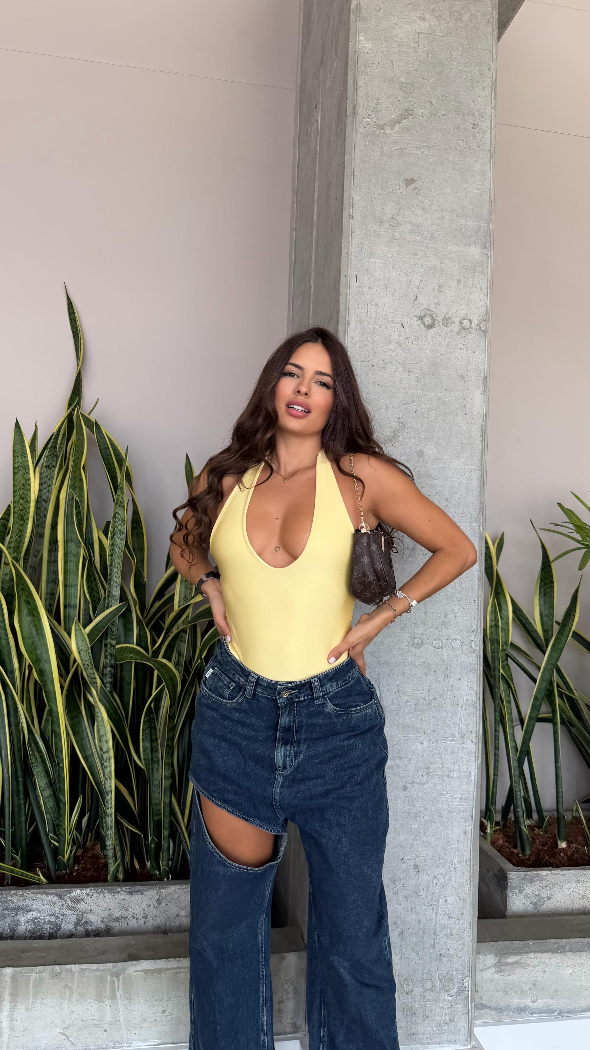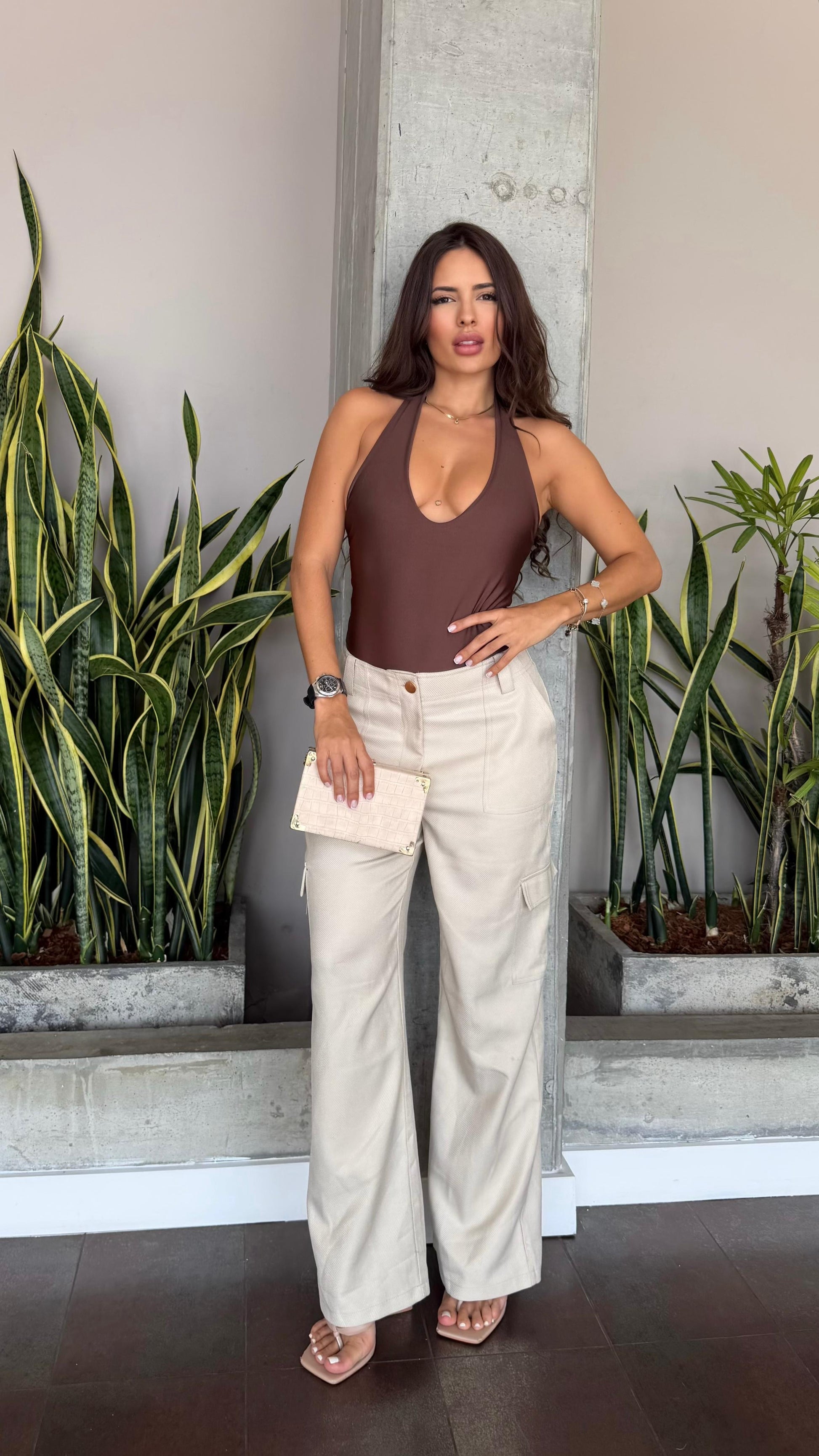 Body cuello halter, escote en espalda, panty tipo tanga con broche tic tac