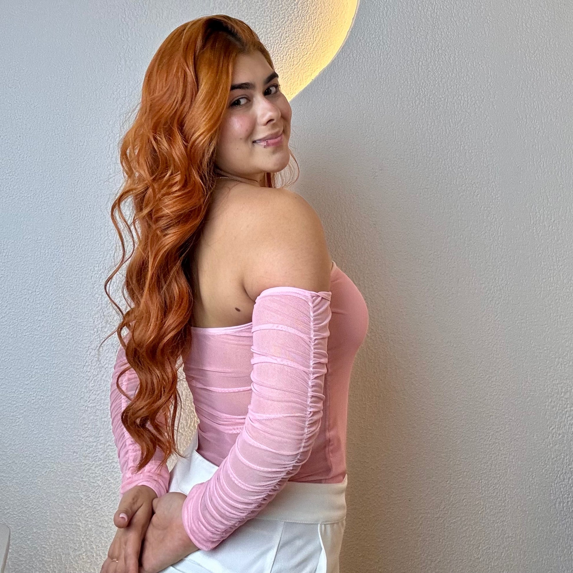 Nuestro body en mesh de manga larga es la prenda ideal para crear looks increíbles. Estraple, hombros al descubierto y mangas con recogido. Panty tipo tanga con broche inferior para mayor practicidad. Cómodo, versátil y con doble tela en la parte delantera: una pieza que vas a querer usar una y otra vez.